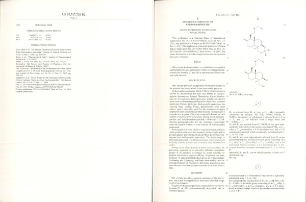 珍寶島9月25日發(fā)布公告,黑龍江珍寶島藥業(yè)股份有限公司(以下簡(jiǎn)稱“公司”)收到美國(guó)專利局頒發(fā)的《專利授權(quán)證書》。該《專利授權(quán)證書》的獲得,是穿心蓮內(nèi)酯改構(gòu)化合物首次在國(guó)際方面獲得專利,也是公司獲得的第三個(gè)美國(guó)專利。